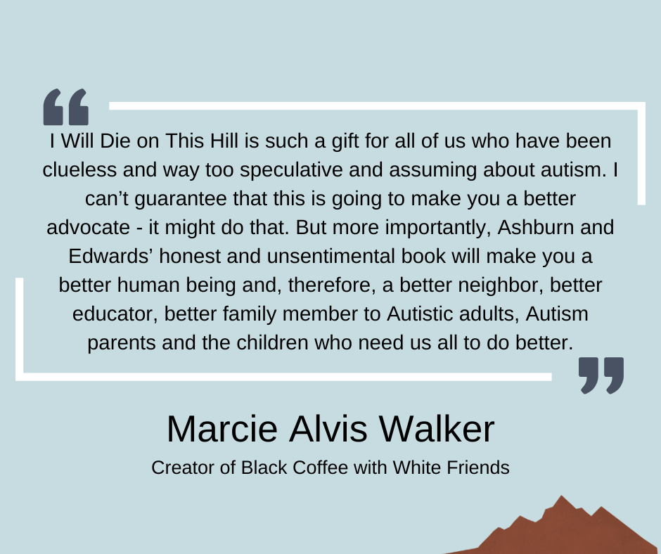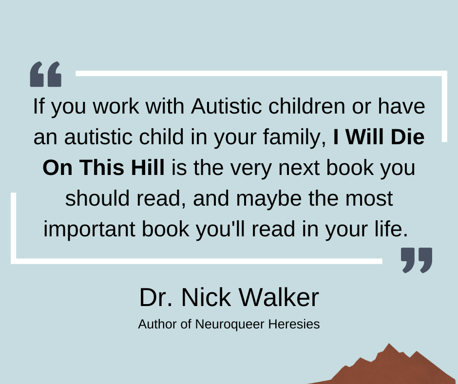 My journey with learning about autism began at a public library. The first book I read was “Uniquely Human” by Dr. Barry M. Prizant. I’m so thankful that I had good resources available to me at the library. I hope that someday I Will Die On This Hill will make such a strong impact on another parent searching for useful information at their own public library.