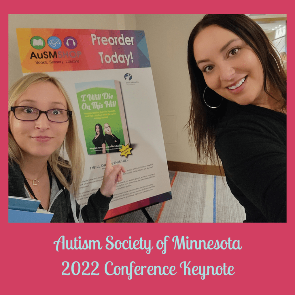 Meghan and Jules, co-authors of I Will Die On This Hill, present together to share their experiences as parents of autistic children.