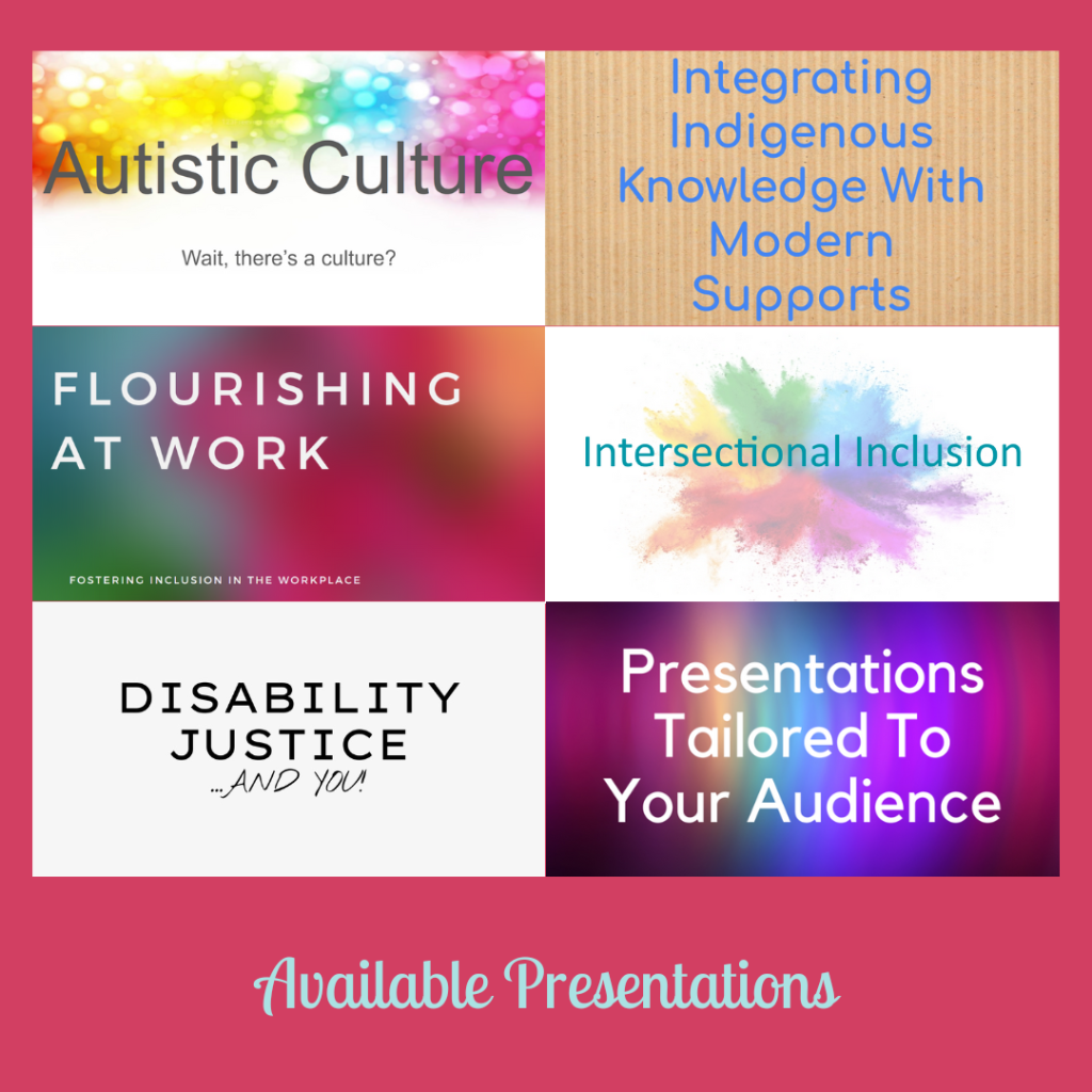 Whether your audience would like to learn some basics, or if they’re ready for a complex discussion, Jules presents on a variety of disability-related topics virtually or in-person.